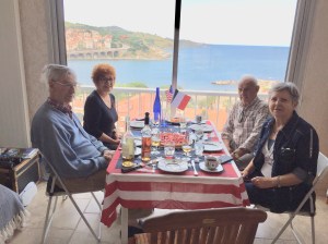 We had glasses of Banyuls wine, tarte aux fraise, decorated with French, American and British flags, coffee and chouquettes.