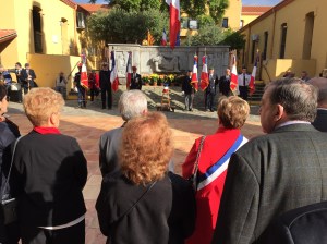 On November 11, we were up early to watch part of the Armistice Day ceremonies in Paris on TV. Then I walked downtown to the ceremony behind city hall, where I met my French friend. We stood listening to all the speeches.
