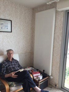 The following month, the gas company store in Perpignan called to say they had our two radiators ready to install. These were a small heated towel rack for the kitchen, and a large radiator for the outside wall of the living room. We were excited about getting more of the old radiators replaced as the old ones were difficult, or not impossible, to regulate. The one in our daughter’s room did not work at all. While the radiators did not matter much when we were only visiting during summer months, now that we were retired and empty-nesters, we were in residence in the spring or Fall when temperatures dropped considerably and the tramontane blew fiercely. We needed the heat for our old bones!