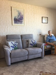 Furniture replacements were next on our list of renovations. We’d used the sofa bed (canapé lit) for over 30 years. There was no support left in it—one sunk so far down and then had trouble getting up!